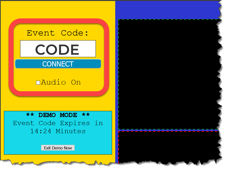 There are two parts to RemCue, the operator screen and speaker screen. When you click the op-screen demo button you will get the operator screen which will display a random event code. Under that code is a CONNECT button, click that to connect to the “Event”. The button will turn green and say “CONNECTED”.